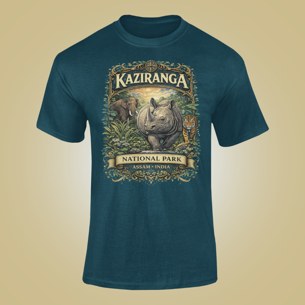 Wear the wild! 🌿 Shop the Kaziranga National Park T-shirt at Aathmasphere. Soft, durable, and featuring an exclusive rhino design. Grab yours today and join the National Park Series community. Style for the soul!